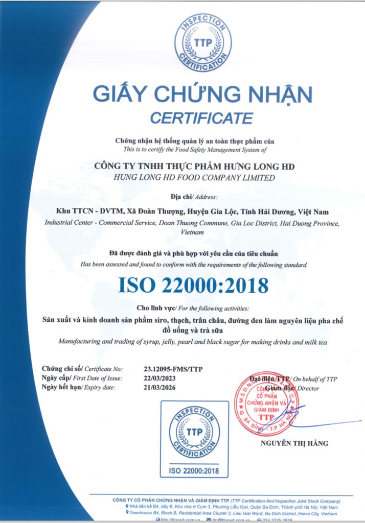 1. Tầm nhìn: Chúng tôi phấn đấu để xây dựng và phát triển HƯNG LONG HD thành doanh nghiệp hàng đầu trong ngành sản xuất, chế biến và cung ứng các sản phẩm ngành F&B . Chúng tôi hướng tới mục tiêu phát triển bền vững thông qua việc tạo ra những sản phẩm hàng hóa chất lượng cao và dịch vụ chuyên nghiệp cho khách hàng trên toàn đất nước và hướng ra thế giới.